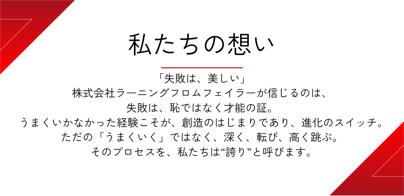 社名とロゴ「Learning from Failure」には、単なる“失敗から学ぶ”以上の、多層的な意味が込められています。